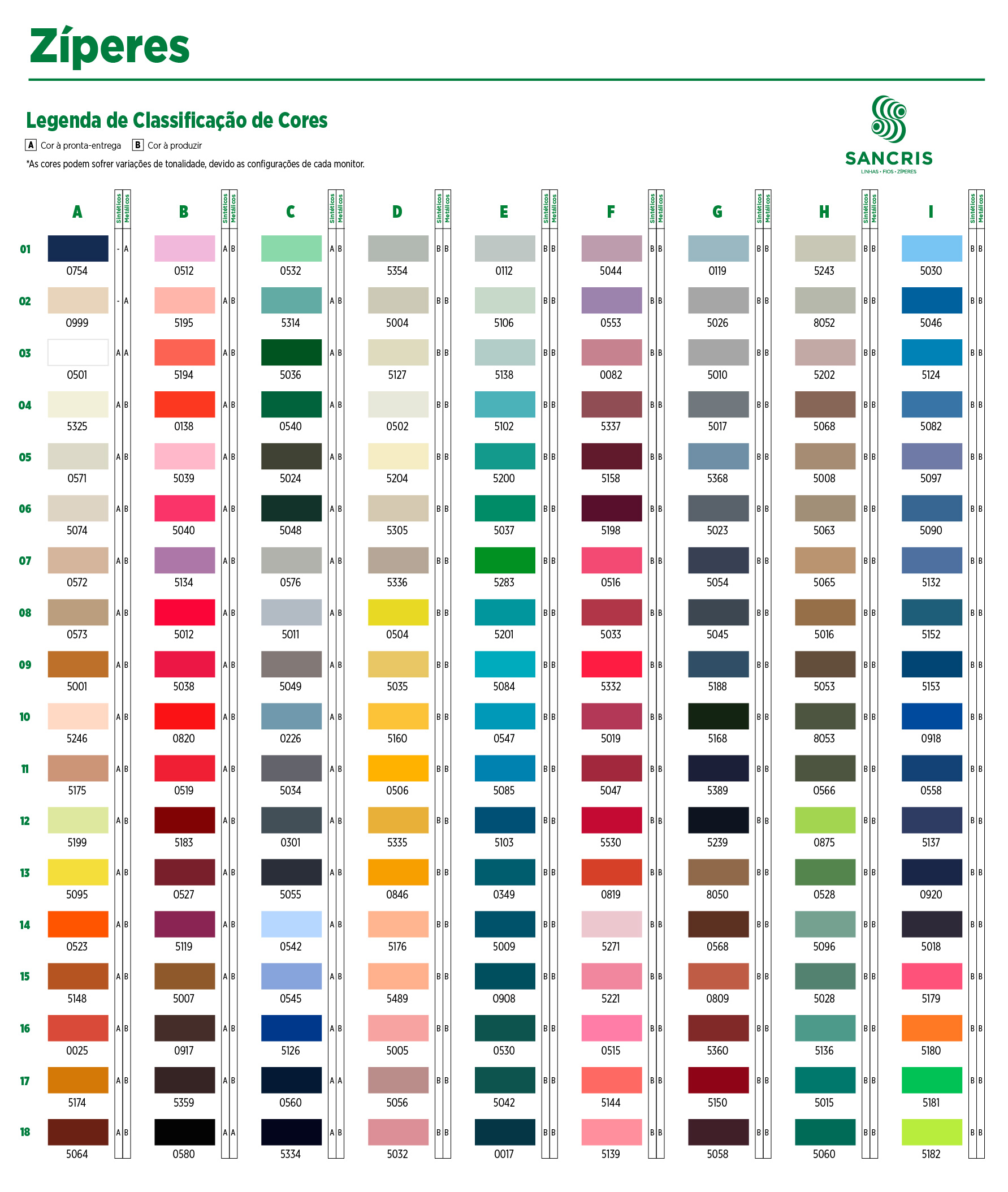 Check here the digitized color palette of Zíperes Metálicos and Zíperes Sintéticos